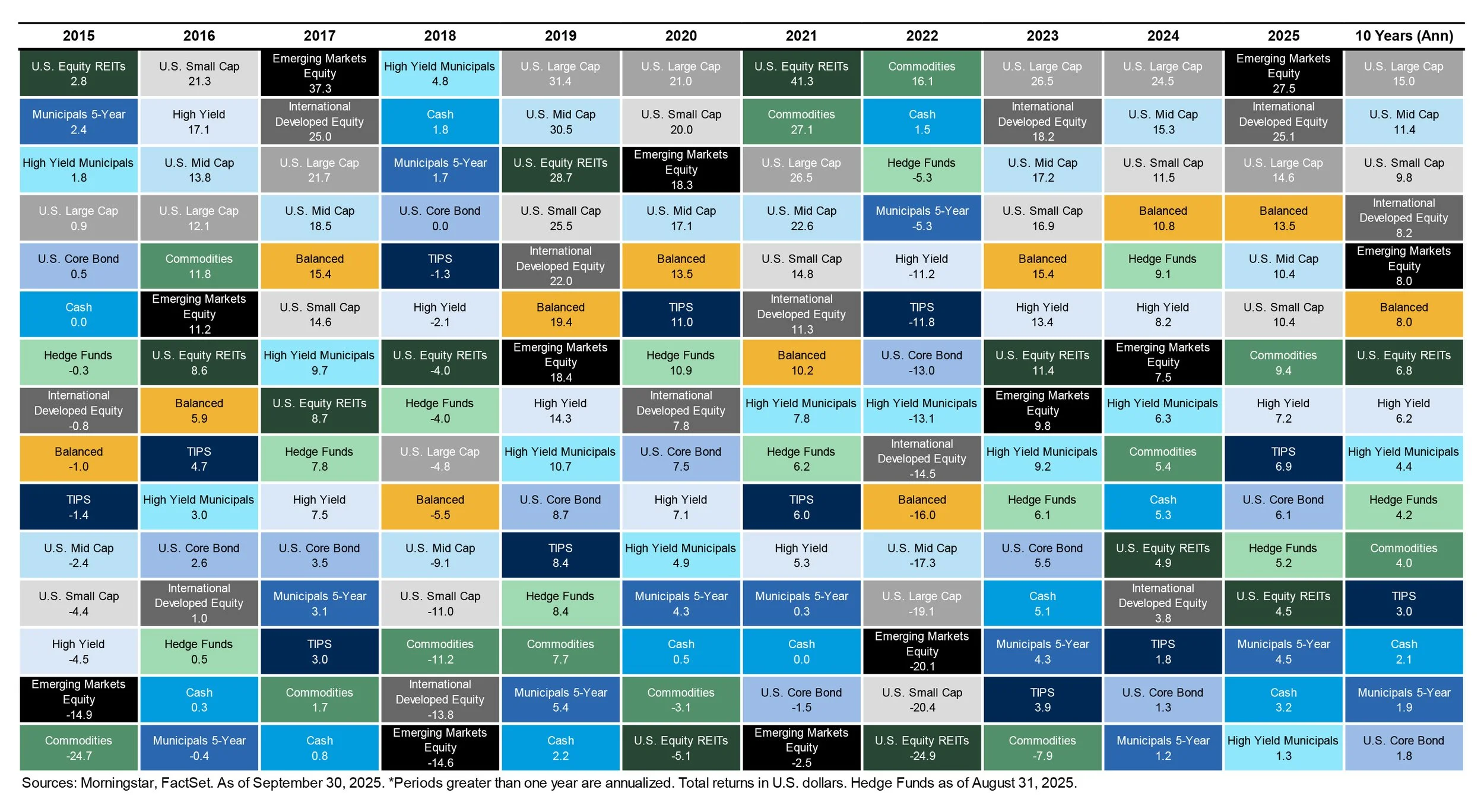 Equity country returns based on the following indices: U.S.: MSCI USA NR USD, China: MSCI CHINA NR USD, Japan: MSCI Japan NR USD, Germany: MSCI Germany NR USD, United Kingdom: MSCI NR USD, India: MSCI India NR USD, France: MSCI France NR USD, Italy: MSCI Italy NR USD, Canada: MSCI Canada NR USD, Korea: MSCI Korea NR USD, Energy: